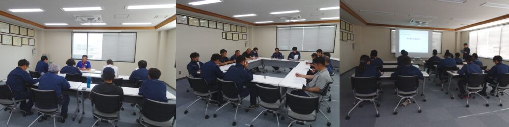 令和7年8月、検査員および採水員を対象に、各課で3回ずつ、各課の管理職が講師となり、検査員研修を実施した。研修内容は1回目が『浄化槽法について・特定既存単独処理浄化槽について』、第2回目が『実事例による7条検査での人員算定について』、第3回目が『実事例による外観検査の判定について・消毒剤(有機系・無機系)の効果について』講義を行った。各研修後に質疑応答が行われ、参加者からは実務に即した質問が多数寄せられた。講師である管理職が具体的な事例を交えながら丁寧に回答し、理解を深める場となった。