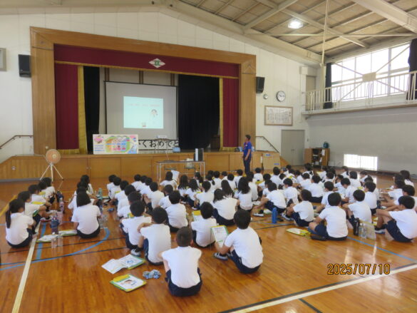 令和7年7月10日(木)、高松市立三渓小学校にて、4年生81名を対象に環境学習を実施した。1時限目の座学では、地球の水循環についての説明を行い、人が一日に使用する水の量を計算することで、水の大切さを学んだ。また、浄化槽のしくみを紹介し、汚れた水をきれいにする方法として、沈殿・ろ過・微生物・薬品処理の各手法についても説明した。2時限目の実験では、ペットボトルを使ってトイレットペーパーとティッシュペーパーの溶け方を比較する実験を行い、水に溶ける性質の違いを体験的に学んだ。さらに、学校近くの川の水を用いて水質実験を実施した。川の上流・下流の水について、透視度やCOD(化学的酸素要求量)を計測することで、水質の違いを数値で比較した。また、水質の指標となる生物についても説明を行い、サワガニなどの生物がきれいな水に生息することを通じて、水環境の状態を生物から読み取る方法を学んだ。児童たちは川や海のよごれには生活排水がかかわっていることに気がつき、日常生活と環境とのつながりを実感する機会となった。この水環境出前講座は、高松市都市整備局下水道部下水道業務課が主催する環境学習で、令和元年度より高松市からの委託事業の一環として当協会が実施しているものである。